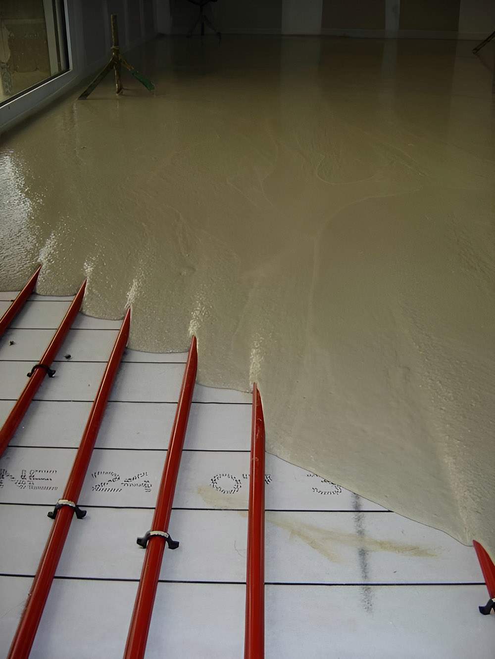 Nous sommes à votre service pour l’application de chape liquide sur tous les types de supports (dallage, planchers en bois, planchers chauffants et autres), idéale pour préparer vos sols avant la pose des revêtements (carrelage, plancher flottant ou autre). La chape liquide permet d’avoir une surface bien plane et d'améliorer l'isolation thermique et acoustique.